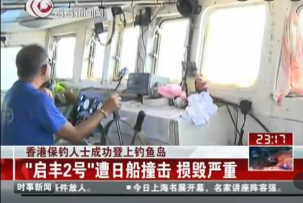 2012年8月12日,兩岸四地人士聯合組織,乘坐“啓豐二號”出海,準備登島保釣。“啓豐二號”在釣魚島周邊遭遇十二艘海上保安廳船隻圍追堵截,還被水炮攻擊、左右夾行,導致船隻損毀,依舊強行駛向釣魚島。