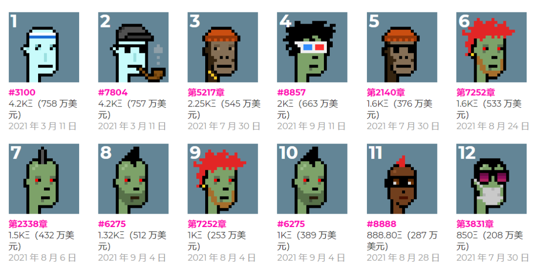 是的,就是這些看起來有些粗糙的像素風頭像,單個的售價就高達數十萬甚至上百萬美元。。。