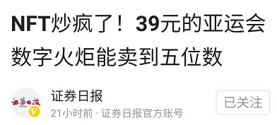 1.證券日報,NFT炒瘋了!39元的亞運會數字火炬能賣到五位數。