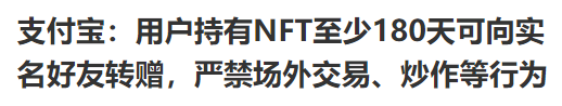 比如説禁止上架二手平台、持有 180 天之後才能實名轉贈等等,想通過限制流通性的方式給 NFT 吹吹冷氣。