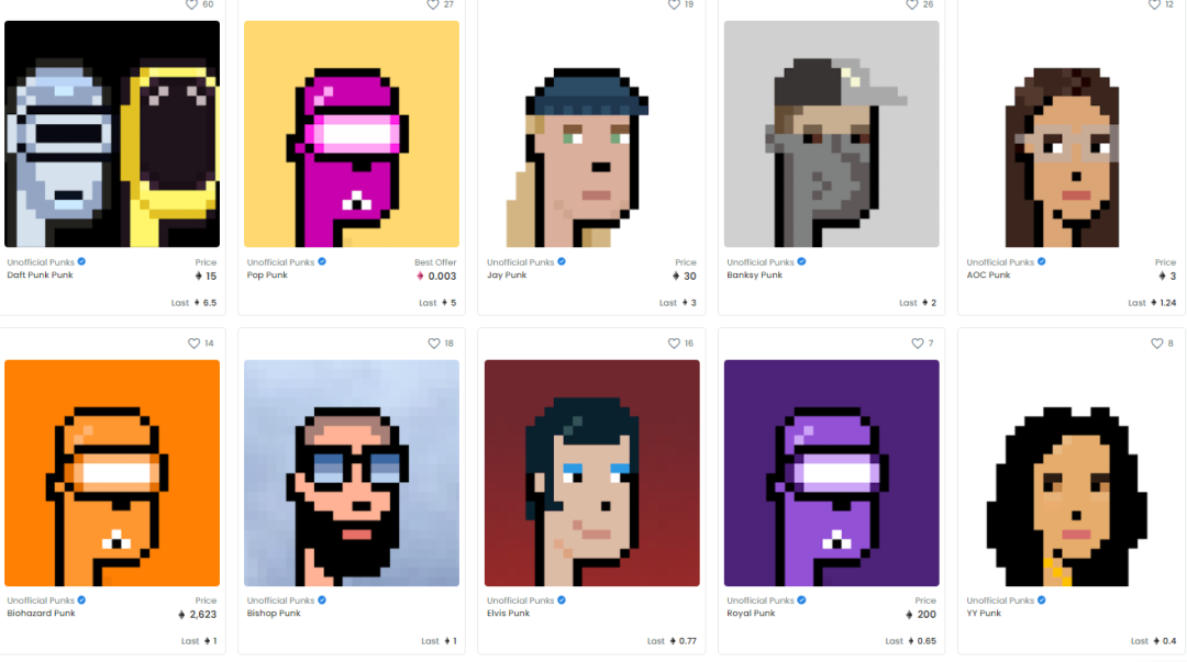 而隨着 cryptopunks 和 BoredApeYachtClub 的成功,市場上還出現了一大堆山寨它們的 NFT 頭像項目。