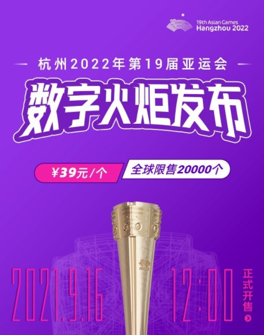 因為在不久前,杭州 2022 年亞運會就發佈了個 NFT 版本的 “ 數字火炬 ” ,售價 39 元,限量 20000 份。