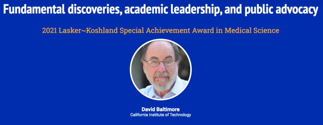 2021年特殊貢獻獎獲獎人為:David Baltimore。
