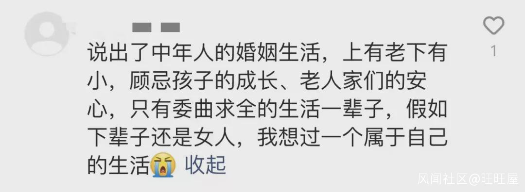 她們的心事通過蘇敏的短視頻發泄了出來,總結起來無非一句話:任勞任怨卻換不來尊重,鞍前馬後得不到體諒,若有可能,下輩子不想做女人了。