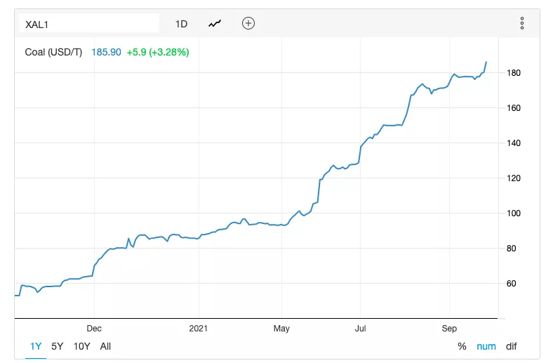 暴漲的並不僅僅是天然氣,還有煤炭。