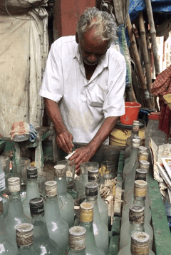 尤其是在看到賣蘆薈汁的印度老頭,從一個塑料桶裏舀出黏糊糊的不明膠狀物體,加入顏色本來還算正常的原材料後,觀眾們的心情就和逐漸皺起眉頭的視頻博主一樣,開始惴惴不安,併產生了些許退縮的心理。在看完博主“捨生就義”般喝下這杯顏色渾濁、外觀怪異的飲料後,觀眾們不由得豎起了大拇指,