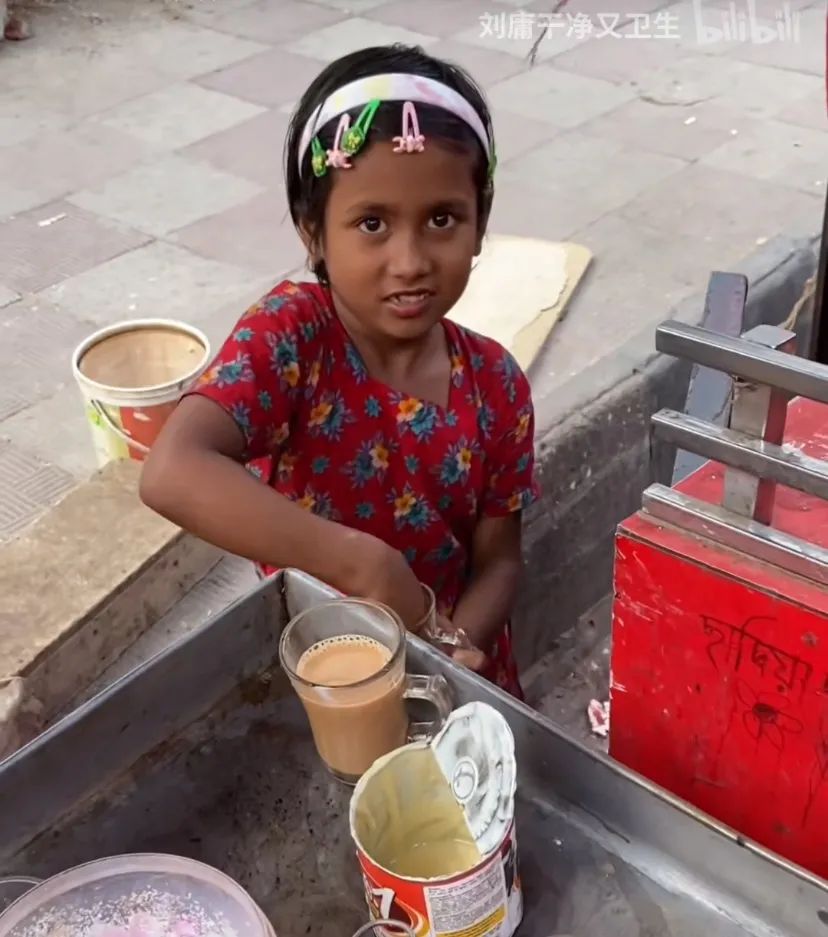 **除了食物,印度的風土人情也能在這些短視頻博主的作品中得到了解,**切椰子的大叔好客的送來免費的番石榴,買奶茶的印度小女孩好奇又羞澀的朝鏡頭微笑,真實的印度的生活在鏡頭中得以展現。