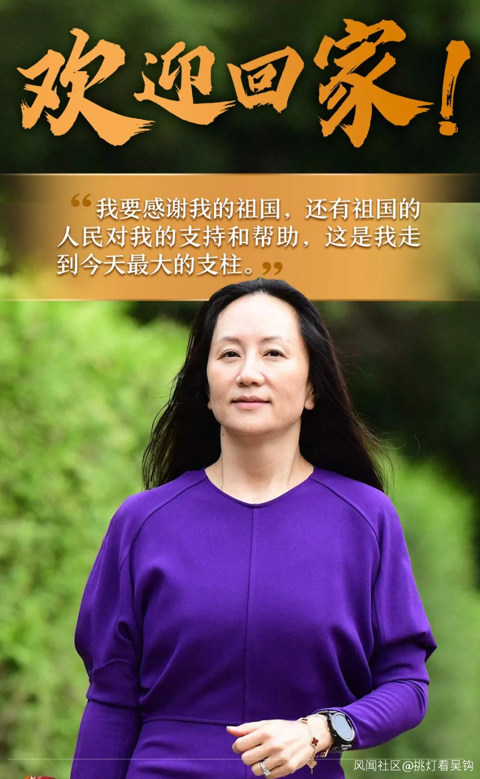 晚舟在加拿大含冤被拘押1028天,終於要回家了,消息傳到中國,14億沸騰了,人人都為晚舟高興,個個都在迎接晚舟。