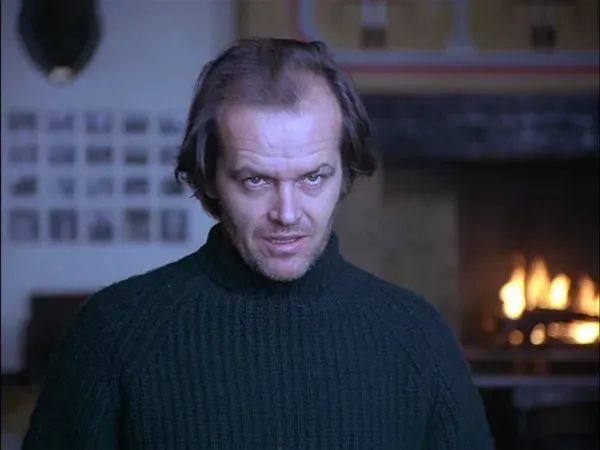 在後來的《閃靈》中,庫布里克也用了這種凝視,他讓傑克在被旅館同化之後使用它,配上詭異的笑容,真的成為了不少人的青年陰影。