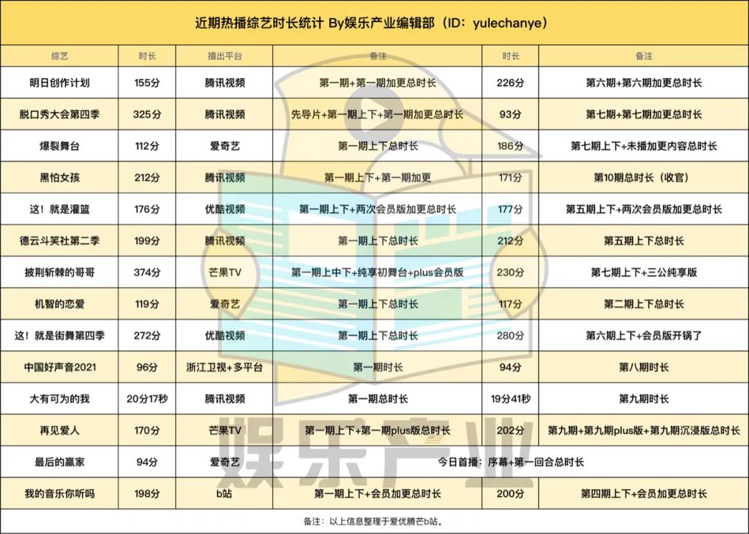 當真有觀眾能看完完整版嗎?同時,我們也好奇:1、當下,綜藝數量增多,但爆款難出的窘境是否與時長有關?2、綜藝時長的變長對於不同工種的人來説,是否造成了困擾?3、既然有20min/期的小鮮綜在嘗試,未來綜藝時長會更傾向變長還是變短?