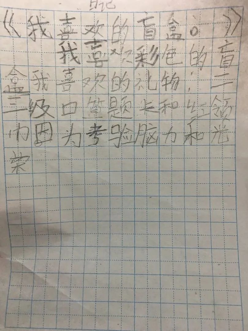 為了真相,我潛入10後羣體,對一年級羣體進行抽樣調查,讓他們用文字寫下自己喜歡的盲盒,不會寫的字用拼音代替。