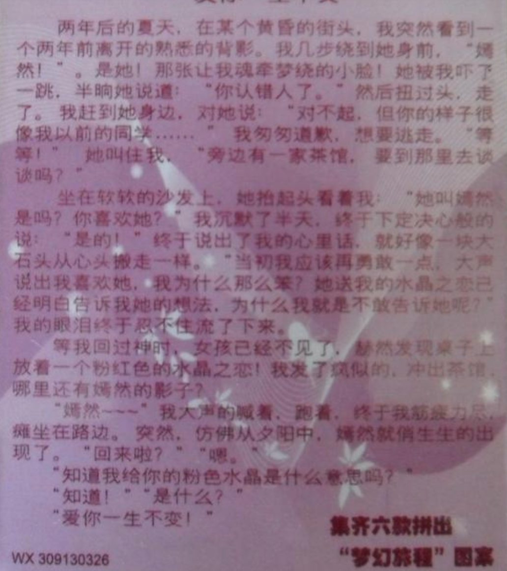 看見朋友圈八零後女青年對水晶之戀沒有小故事的惋惜,想起了那些年被六款水晶之戀支配的恐懼。為了湊足“夢幻旅程”,一眾女孩澱粉超標。
