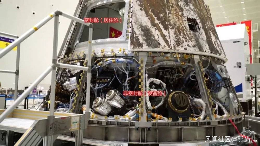 如前文所述新一代載人飛船是兩艙設計,而作為兩艙之一的返回艙也有細分的“兩艙”,金屬結構作為艙壁構成可居住的密封艙,外層則是輕質碳基微燒蝕防熱材料構成的防熱層,兩層之間的空間就是非密封艙。