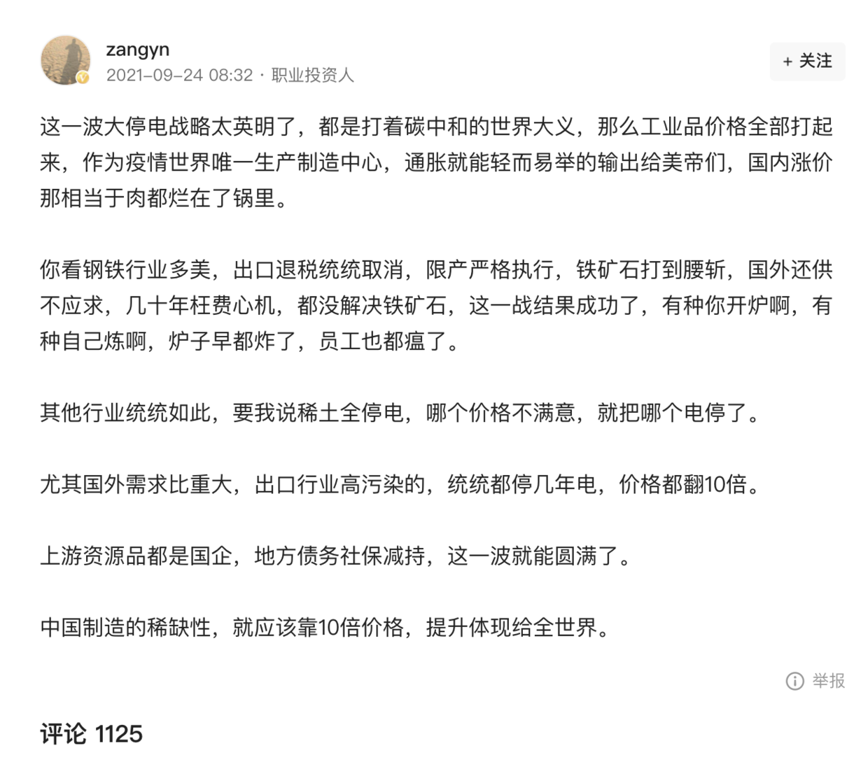 就有人説這一波大停電是打着碳中和的名義輸出通脹。