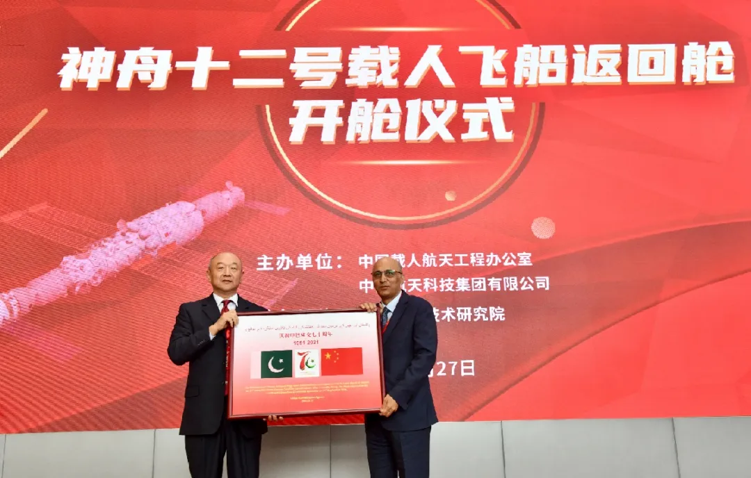 外交部亞洲司、非洲司代表,中國載人航天工程辦公室代表,中國衞星發射測控系統部代表,中國航天科技集團有限公司代表,巴基斯坦、納米比亞駐華使館代表,相關物品搭載單位代表和媒體記者共約100人蔘加了開艙儀式活動。北京市方圓公證處對開艙儀式進行了現場公證。