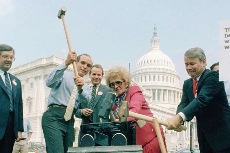 事件爆發後,美國國會議員跑到白宮門口砸毀東芝收音機。