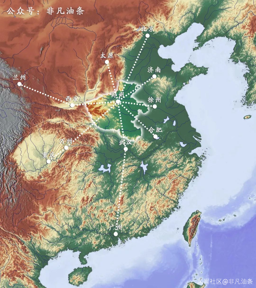 比如説交通領域,鄭州在高鐵時代盡力爭取,建設了鄭州到西安、鄭州到重慶,鄭州至太原、鄭州到濟南、鄭州到合肥等高鐵線路,建設成國內第一個 “米字形”高速鐵路網。高鐵時代的另一個贏家是合肥,安徽境內已開通合寧、合武、京滬、合蚌、合福、寧安、鄭徐、杭黃、鄭阜、商合杭等10條高鐵項目,運營里程達2165公里,成為全國第二個“市市通高鐵”的省份,合肥也成了米字型樞紐。