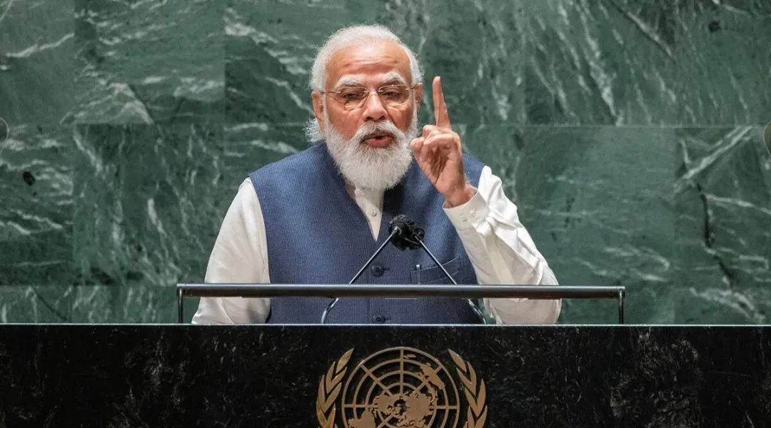 9月25日,印度總理納倫德拉·莫迪在紐約第76屆聯合國大會上發表講話,圖源:路透社