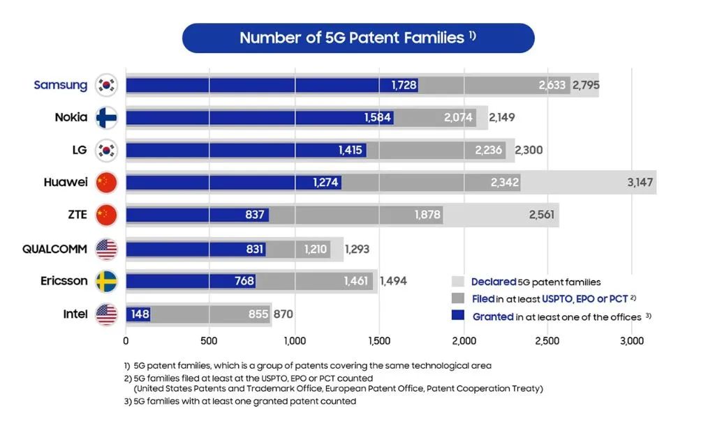 華為擁有着大量的技術專利,僅申請的專利數量多達3147項,大部分美國科技企業都無法繞開。