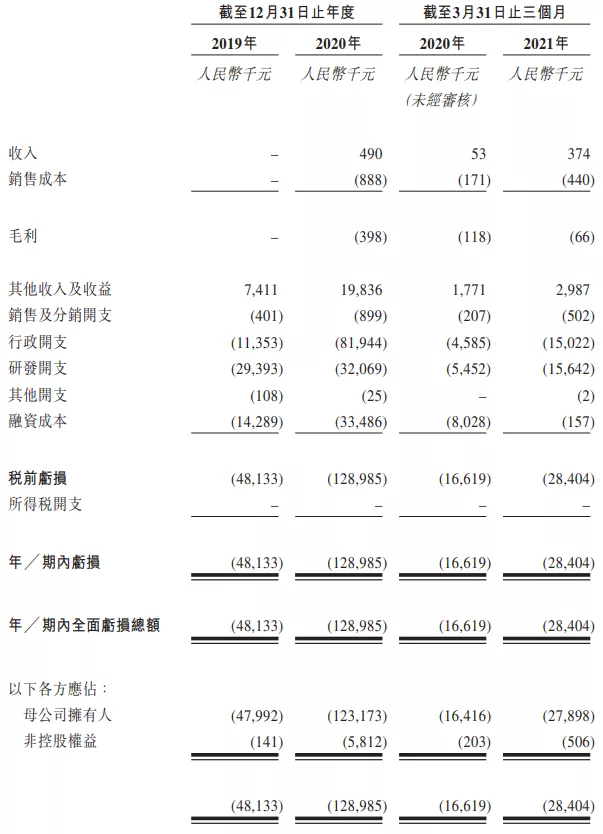 截至目前,捍宇醫療仍未有產品實現上市。2019年及2020年,捍宇醫療研發成本分別為2900萬元、3200萬元,分別虧損4813萬元、1.29億元。