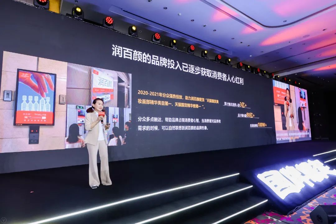 “潤百顏背靠華熙生物,在產品品質上有充分説服力。分眾廣告能有效傳遞潤百顏品質信息,也能放大潤百顏的熱銷感,這樣就提升了消費者對潤百顏的品牌認知和信任度。”華熙生物董事長兼總經理趙燕分享稱,線下傳播的發力,也帶動了線上平台的關注與轉化。