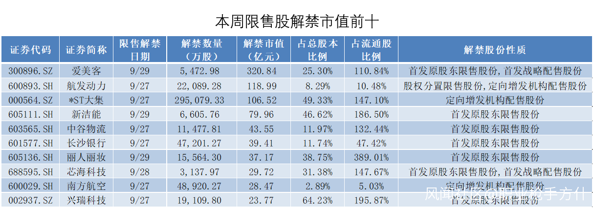 本週將有11加上市公司迎來股份解禁:名單_風聞