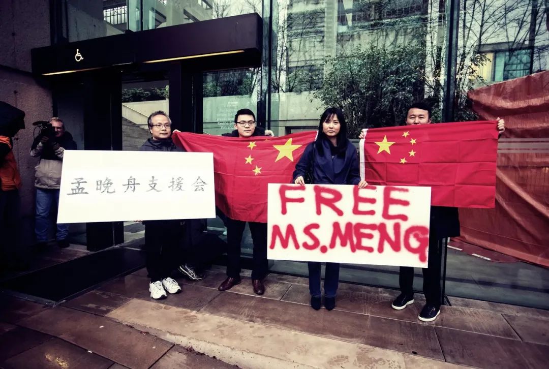 也有些民眾,選擇在法庭外舉起橫幅支持孟晚舟。