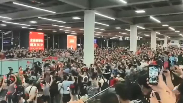 夜空下,在停機坪等待着孟晚舟回家的人們讓《歌唱祖國》響徹了整個深圳機場,而在候機大廳,歌聲也一直沒有停止。