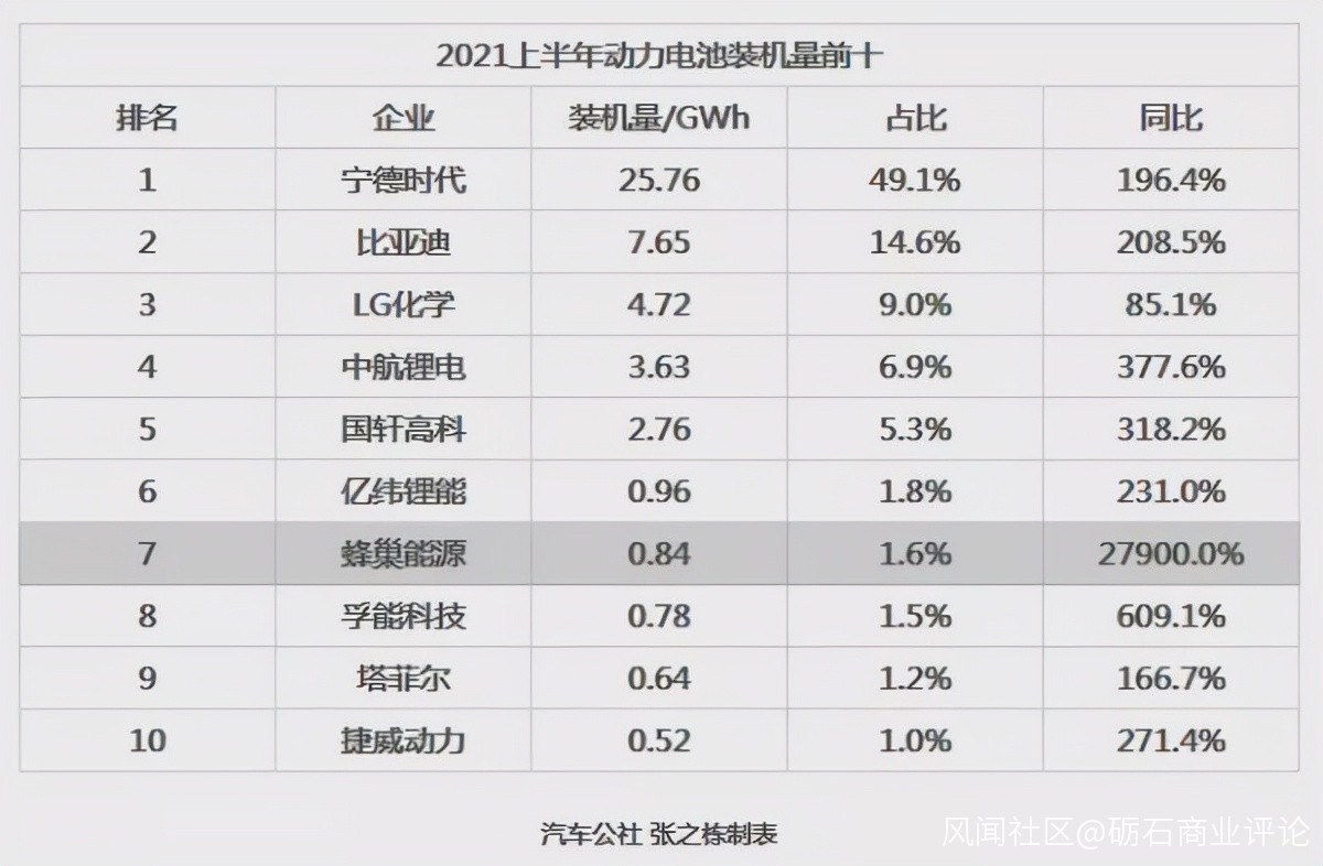 好的一點是,在歐拉品牌的帶動下,長城汽車新能源汽車銷售逐漸打開局面。2021年上半年,歐拉黑貓以3.37萬輛的銷量進入國內新能源汽車排行榜前五名,長城集團旗下蜂巢能源裝機量也成功闖入動力電池裝機量前十名,同比大增27900%。