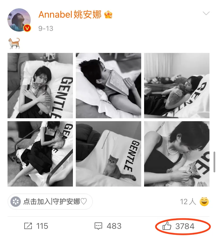 姚安娜宣佈參加《中餐廳第五季》的錄製時,點贊量只有2.3萬。