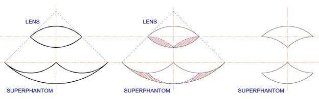 再來看另一個例子,從一個圓中減去兩個鏡片,對應的超級幻影則是從完全對稱的方圓中減去兩個廣義對稱的方圓。
