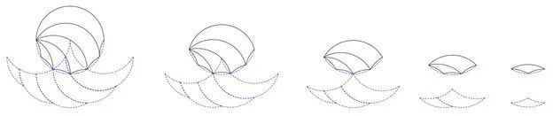 假如有任意一個鏡片形狀的物體,用三曲線來對其進行填充可以得到兩個較小的鏡片。每個小鏡片可以被兩個更小的鏡片和一個三曲線填充。以此類推,任何鏡片都可以用一系列越來越小的鏡片填充。這種情況也適用於圓,因為圓同樣是一種鏡片。