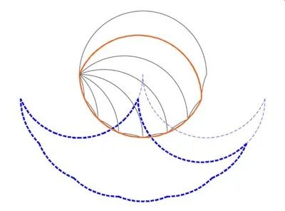 圖十五沒有顯示圓下半部分的圓弧和鏡片,因為將其做的很小,所以在這個尺度下很難區分。**隨着小圓弧的角度大小趨近於 0° ,主要的三曲線的會趨近於無限多,而剩餘要填充的鏡片也會無限小。**這似乎是最簡單,也是最優雅的填充圓的方法。