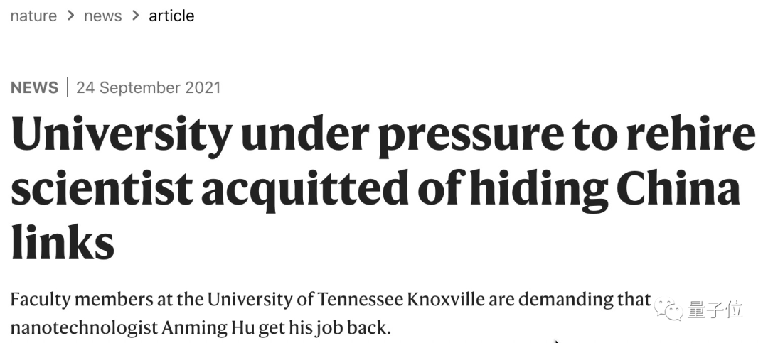 據Nature報道,第一個因美國“中國行動計劃”而受審的華人教授胡安明,被宣判無罪後,仍然處於失業狀態,無法回到他在田納西大學的教職崗位。