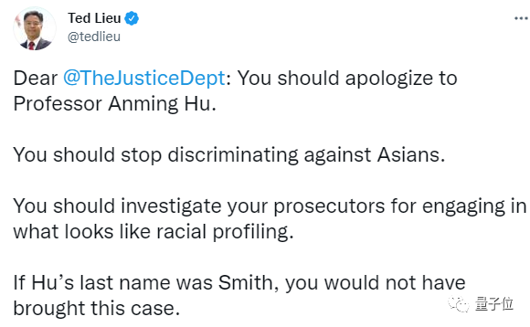 一位國會議員則發推要求美國司法部向胡安明道歉。