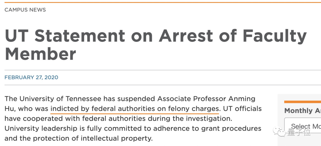 根據美國法律,NASA不能資助與中國或中國機構有關的研究。田納西大學也因此直接停職,後解僱胡安明副教授的終身職位(下圖來自校官網)。