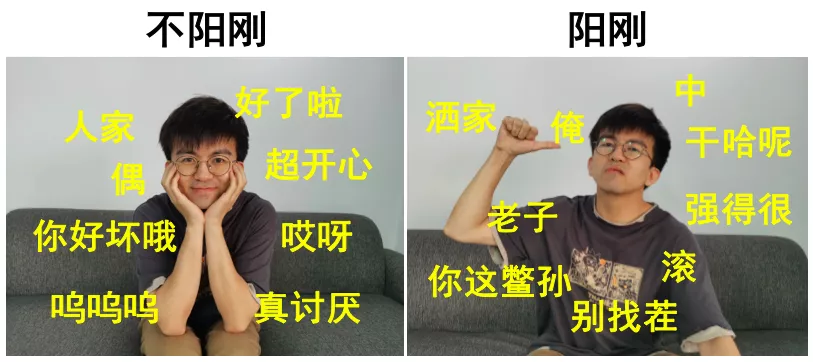 陽剛之人使用的語言,往往也是陽剛的。陽剛之人從不示弱,所以像一些可愛、軟萌的詞彙,我們萬萬不能使用!