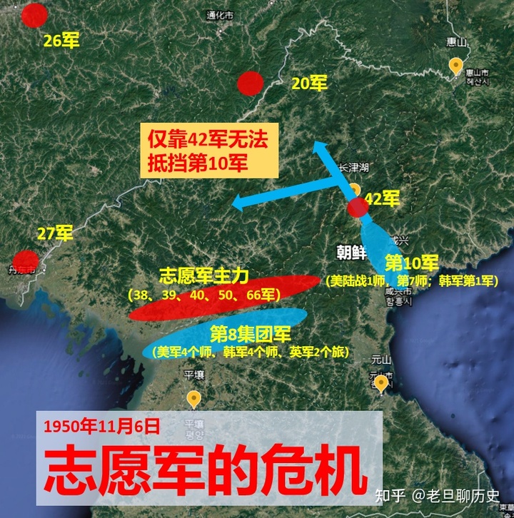 根據第一次戰役的結果評估,目前入朝的志願軍(6個軍)剛好能夠對付西線的敵人(第8集團軍);但此時東線敵人第10軍已經集結完畢,目前東線僅有的42軍不可能擋住敵人這支主力,如果沒有新的援兵加入,第10軍不僅將輕鬆打到鴨綠江,更糟糕的是會直接威脅志願軍主力的側後方,整個戰局將陷入巨大危機。