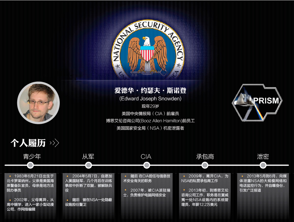 前中情局職員斯諾登將兩份絕密資料交給英國《衞報》和美國《華盛頓郵報》。