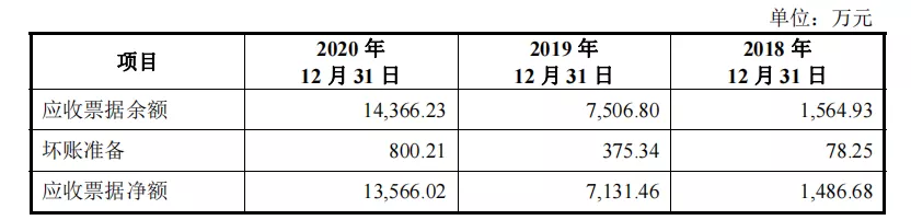 2020年,公司應收票據餘額較上年翻了近一倍,佔流動資產的比率由2018年的7.43%上升至18.29%。公司的壞賬準備也由2019年的375萬上升至800萬。