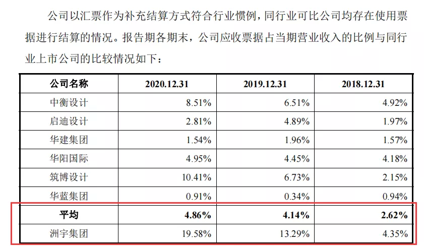 截至報告期末,**洲宇集團應收賬款及合同資產合計近3.5億,佔同期營收50.26%;應收票據金額近1.4億,佔當期營收的比例高達19.58%,**遠高出其他同行以及行業4.86%的平均水平。