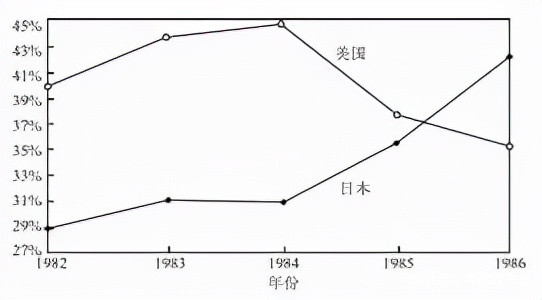 圖 2.7 美國和日本(產品)的市場份額 (全球市場的百分比)