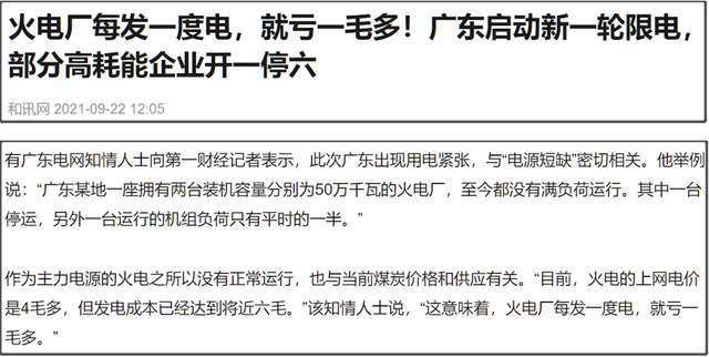 只是現在因為煤炭價格暴漲,導致火力發電沒辦法全負荷允許,而且水力發電也減少,才共同導致的一個階段性結果。