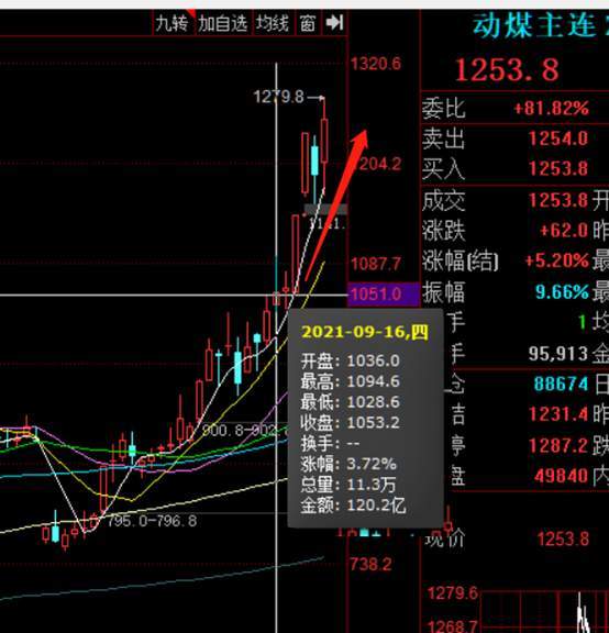 但在9月16日之後,我們煤價就出現一波暴漲,一口氣又漲到了1200元/噸。