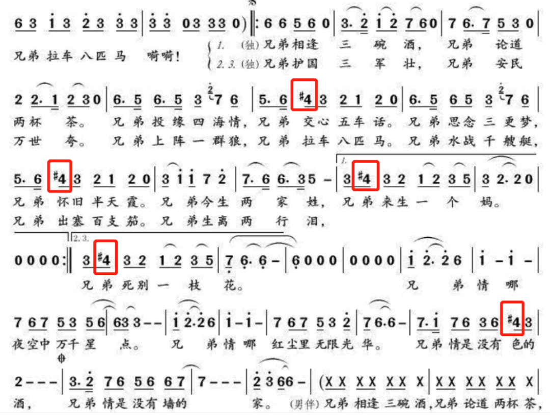 首先,《兄弟無數》的旋律沒有那麼多取材自民間小調的元素,所以《兄弟無數》的旋律不像《好漢歌》,有一些土(非貶義)的成分,反而因為多利亞調式的運用,顯得更華麗一些。