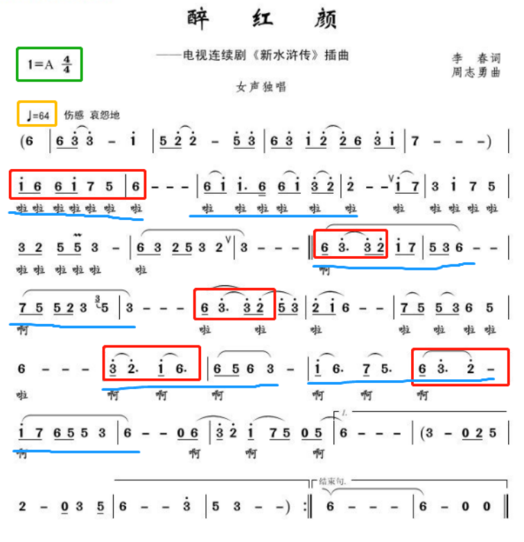 這首曲子,和《四海盟約》的旋律譜寫方式非常相近:相似的起始動機(紅色)、相似的節奏型(藍色)、相似的速度(黃色)、相同的調性(綠色)。