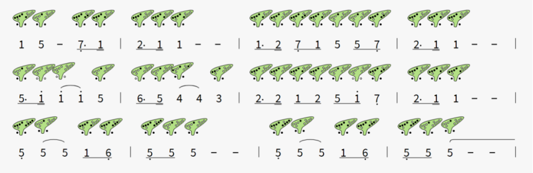 0:42秒,全曲的最高潮部分——嗩吶演奏。這裏用到了中國傳統七聲調式裏的清樂徵調式進行旋律譜寫: