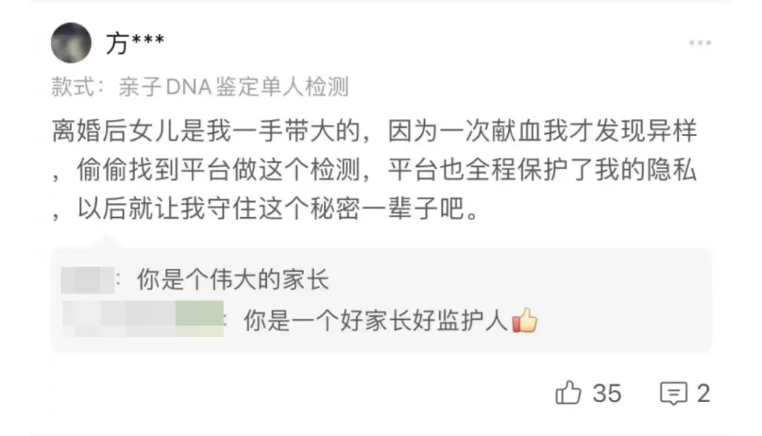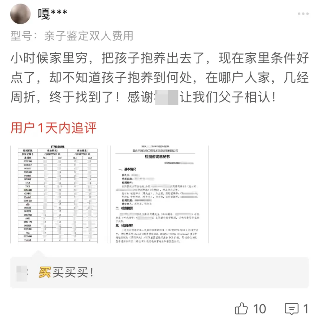 當然,評論區中也不乏温情故事,比如孩子被拐賣,找了好多年,通過親子鑑定終於找到親生骨肉,收穫了一家人大團圓的happy ending。