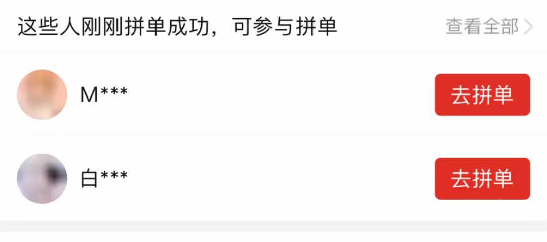 他們的頭像被拼多多細心地打上了馬賽克,這是其他拼單產品無法擁有的待遇。