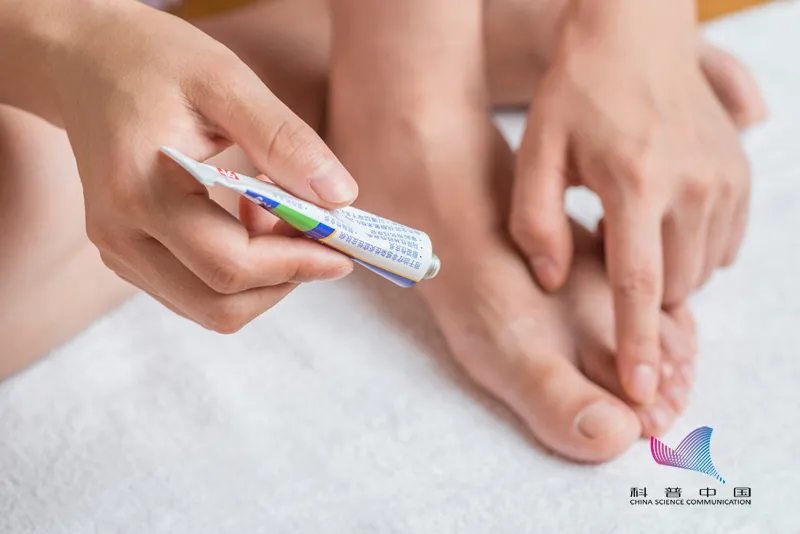要正確使用抗真菌藥物,**一般情況下,外用藥膏塗抹4至6周,塗藥要超過皮損的範圍,整個腳掌都需要塗藥,而不只是在腳上瘙癢的部分。**因為其他地方很可能也感染了,只是沒有表現出來,很可能藥物把原來的部位給壓制了,新的腳氣又發出來了。